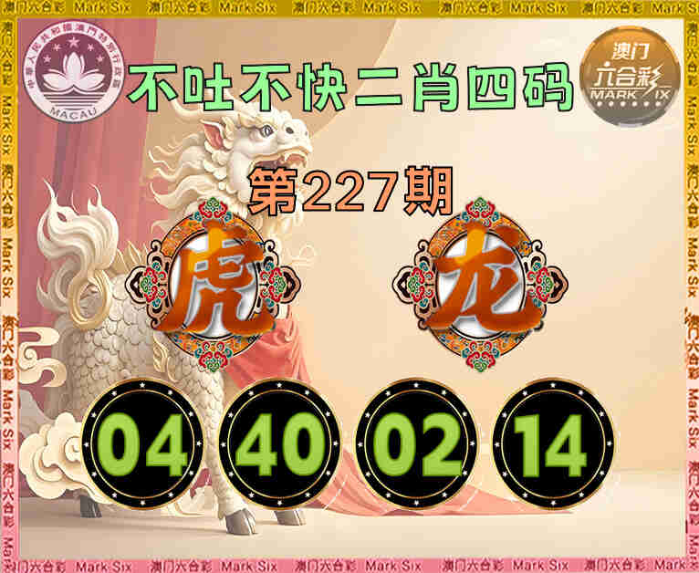 227期:《不吐不快》 🗡二肖四码🗡【龙】【04.40.02.14】开:虎40