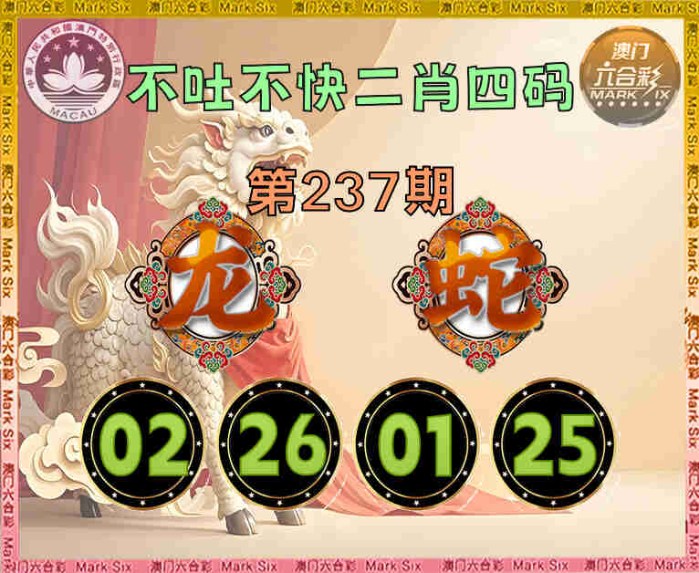 237期:《不吐不快》 🗡二肖四码🗡【蛇】【02.26.01.25】开:龙02