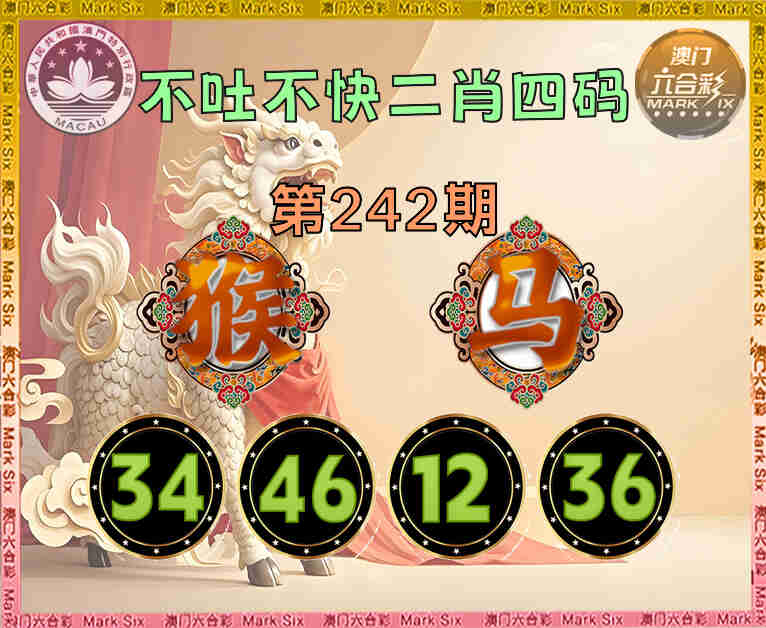 242期:《不吐不快》 🗡二肖四码🗡【马】【34.46.12.36】开:猴34