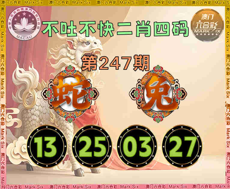 247期:《不吐不快》 🗡二肖四码🗡【兔】【13.25.03.27】开:蛇25
