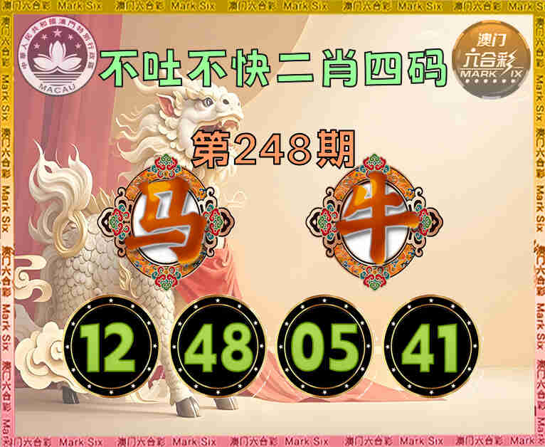 248期:《不吐不快》 🗡二肖四码🗡【牛】【12.48.05.41】开:马12