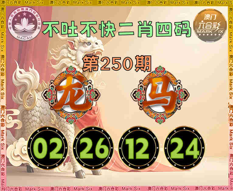 250期:《不吐不快》 🗡二肖四码🗡【龙】【02.26.12.24】开:马12