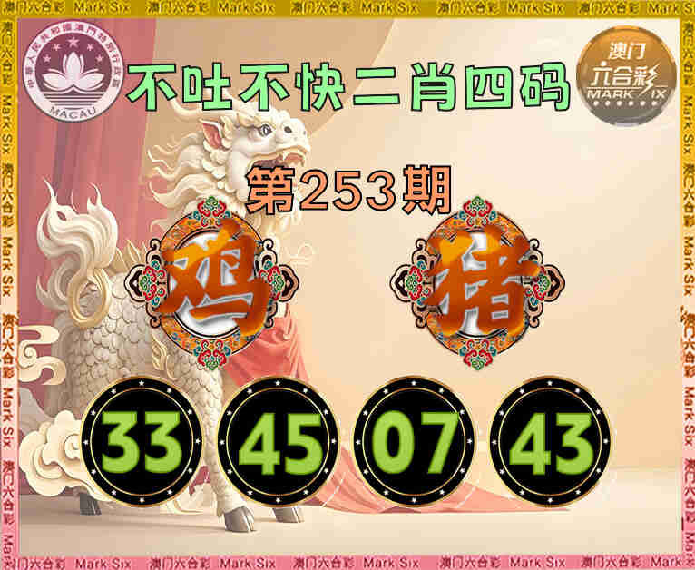 253期:《不吐不快》 🗡二肖四码🗡【猪】【33.45.07.43】开:鸡33