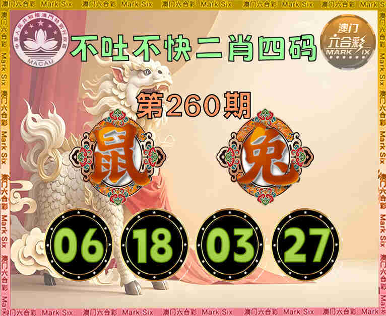 260期:《不吐不快》 🗡二肖四码🗡【鼠】【06.18.03.27】开:兔03