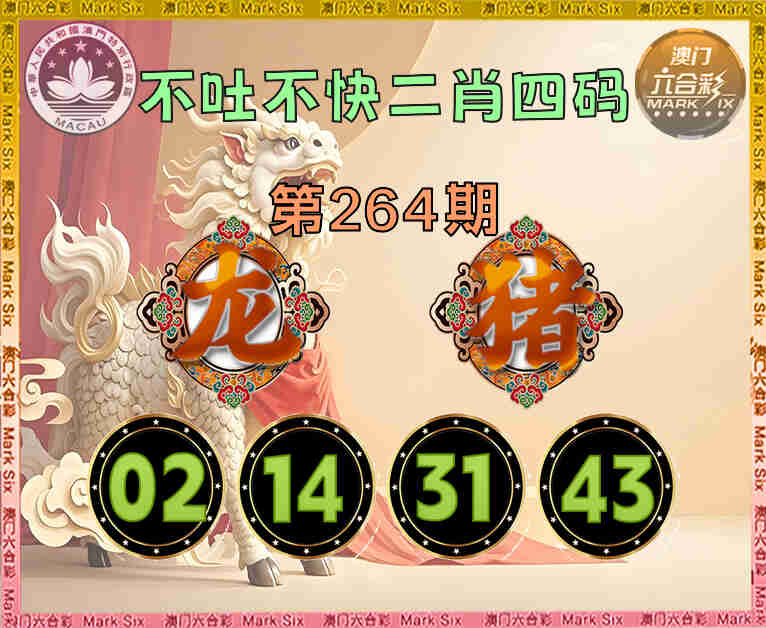 264期:《不吐不快》 🗡二肖四码🗡【龙】【02.14.31.43】开:猪43