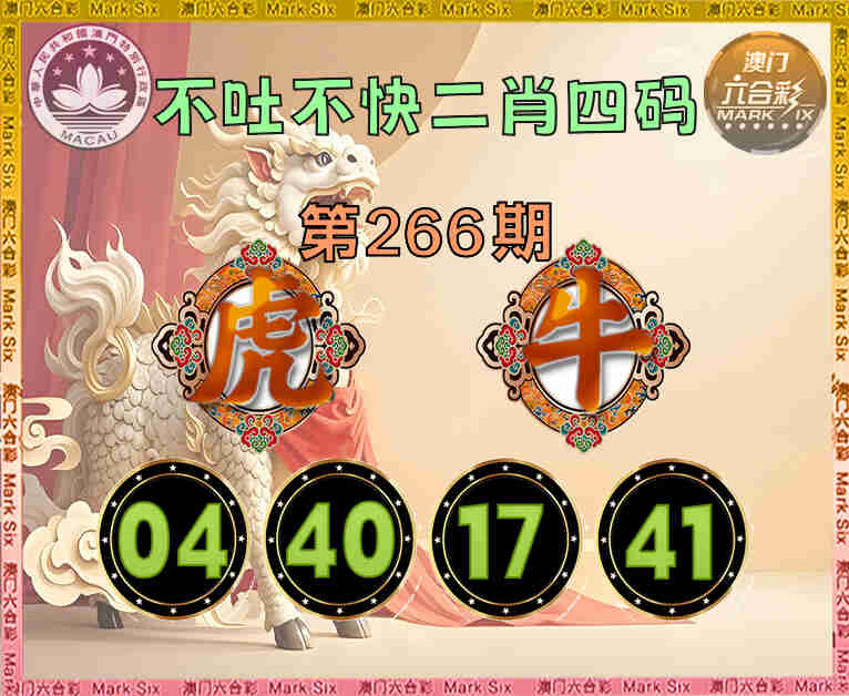 266期:《不吐不快》 🗡二肖四码🗡【虎】【04.40.17.41】开:牛41