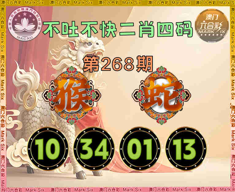268期:《不吐不快》 🗡二肖四码🗡【蛇】【10.34.01.13】开:猴10