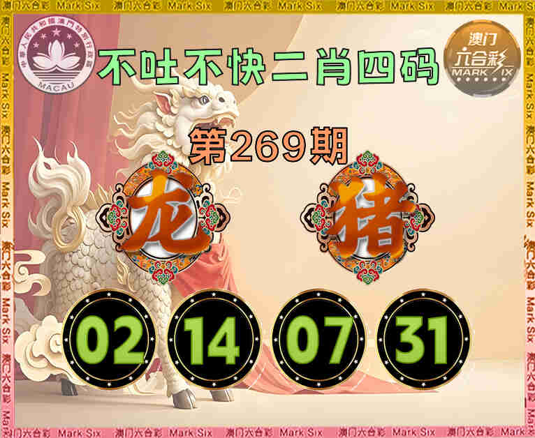 269期:《不吐不快》 🗡二肖四码🗡【龙】【02.14.07.31】开:猪31