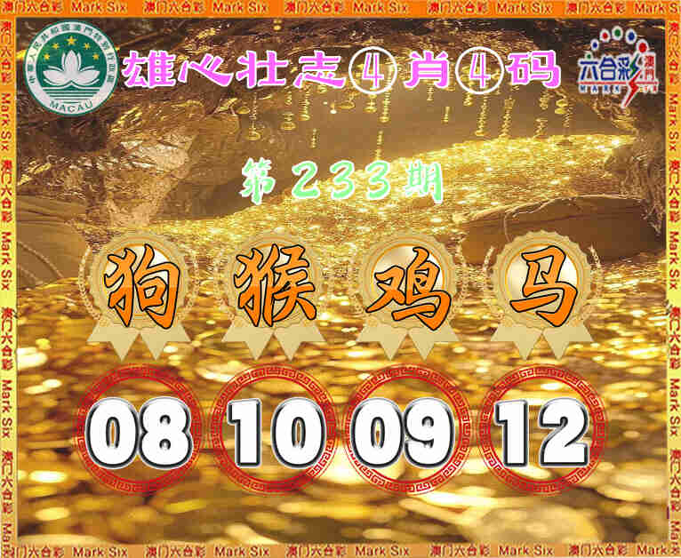 233期:【雄心壮志】 🧣④肖④码🧣【狗猴鸡马】【08.10.09.12】开:蛇37