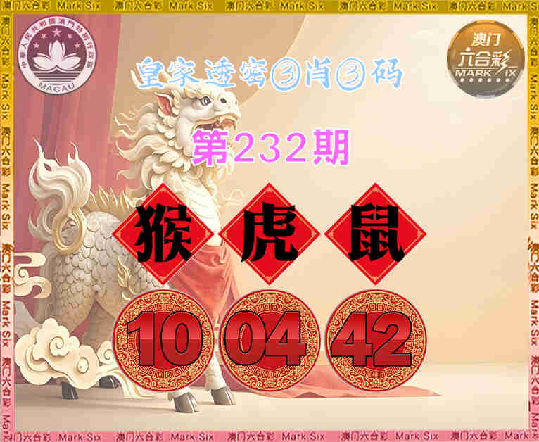232期:【皇家透密】 😳③肖③码😳【猴虎】【10.04.42】开:鼠42