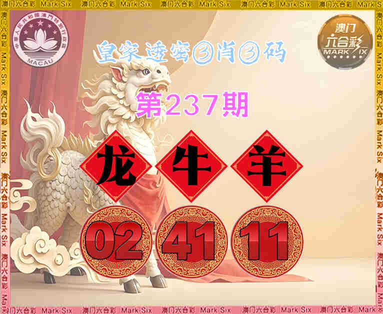 237期:【皇家透密】 😳③肖③码😳【牛羊】【02.41.11】开:龙02