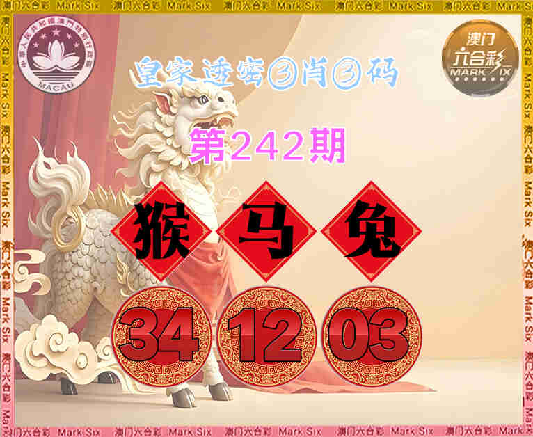 242期:【皇家透密】 😳③肖③码😳【马兔】【34.12.03】开:猴34