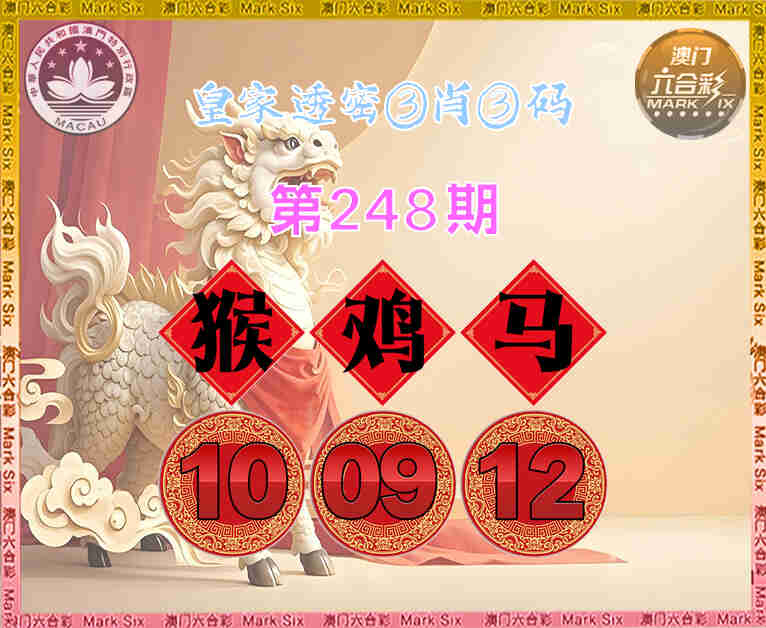 248期:【皇家透密】 😳③肖③码😳【猴鸡】【10.09.12】开:马12