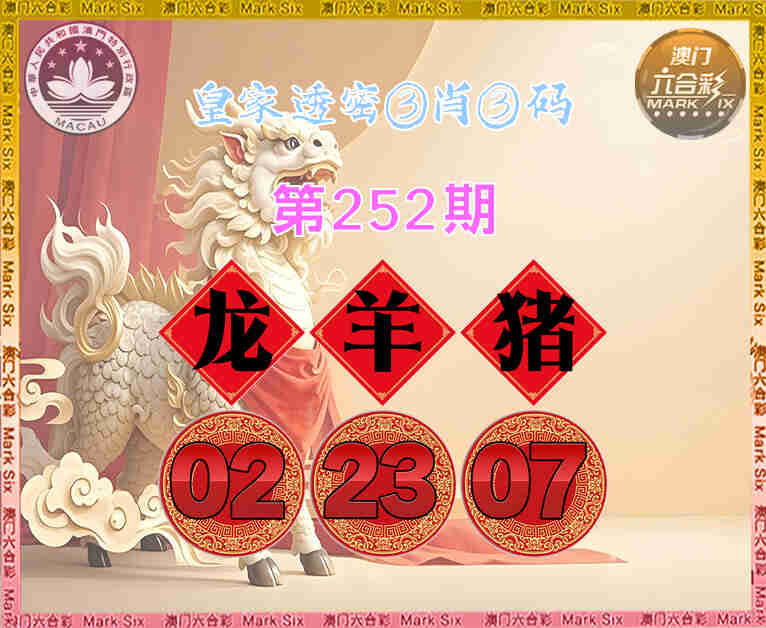 252期:【皇家透密】 😳③肖③码😳【龙猪】【02.23.07】开:羊23