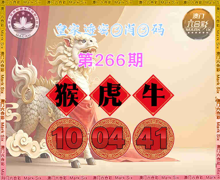 266期:【皇家透密】 😳③肖③码😳【猴虎】【10.04.41】开:牛41